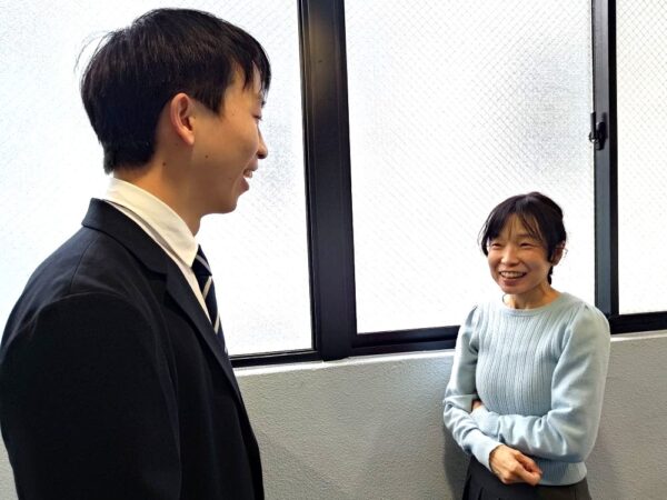 Zhang (from China), who completed the YIEA program in 2024, went on to study International Information Business at a vocational school. From April 1 this year, he has started working at a real estate company in Japan. He recently came back to visit his teachers at YIEA, and we had a chance to talk with him.