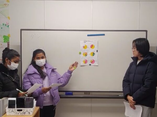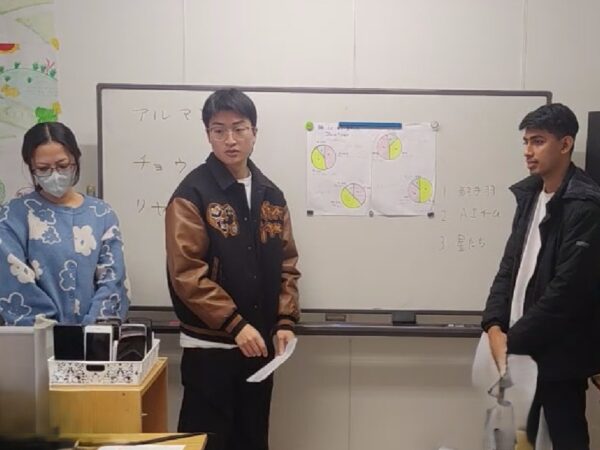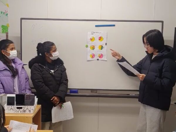 In addition to preparing materials such as graphs and data for their presentations, students also evaluated each other while listening to the presentations, focusing on points such as “Was the pronunciation easy to understand?”, “Was the voice loud enough?”, and “Was the speaking speed appropriate?”.