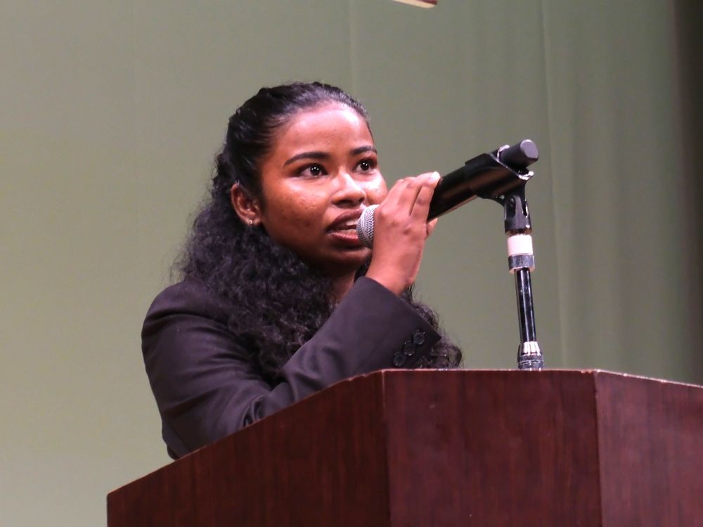 今年,全體學生齊聚比賽場地參加演講比賽。