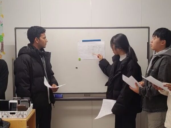 中级3班的学生进行了小组活动的发表。他们围绕留学生沟通情况制作了问卷并进行调查,随后对调查结果进行了发表。发表时不仅要制作图表等资料进行说明,在聆听发表时,学生之间还会从“发音是否清晰易懂”“声音大小”“说话速度”等方面相互进行评价。无论是发表的学生,还是听发表的学生,大家都非常认真!