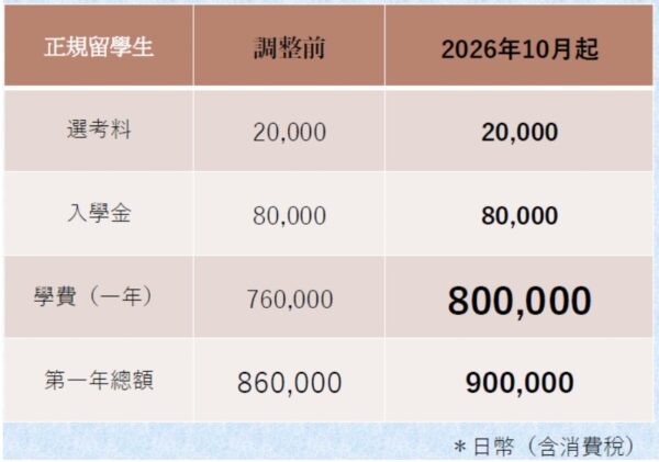 横滨国际教育学院现决定于2026年10月生开始更改学费,还请您谅解。